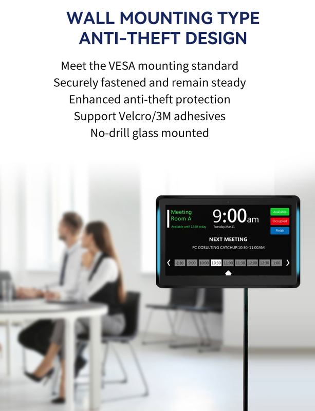 বিশেষভাবে কর্পোরেট পরিবেশ, স্মার্ট বিল্ডিং এবং শিক্ষা প্রতিষ্ঠানের জন্য ডিজাইন করা হয়েছে, এই ওয়াল-মাউন্টেড ট্যাবলেটটি একটি সাধারণ স্ক্রিনের চেয়ে বেশি কিছু—এটি একটি বুদ্ধিমান যোগাযোগ টার্মিনালে পরিণত হয় যা স্থান ব্যবস্থাপনা এবং মিটিংয়ের দক্ষতা বাড়ায়। সমন্বিত এলইডি লাইট বার ব্যবহারকারীদের রুমের উপলব্ধতা সম্পর্কে তাৎক্ষণিক ভিজ্যুয়াল সংকেত দেয়—ফ্রি-এর জন্য সবুজ, দখল করা হলে লাল—যা কর্মচারী এবং দর্শকদের এক নজরে মিটিংয়ের অবস্থা সনাক্ত করা সহজ করে তোলে। এই স্বজ্ঞাত অভিজ্ঞতা দৈনিক কার্যক্রমকে উন্নত করে এবং একটি ব্র্যান্ডের পেশাদারিত্ব এবং ডিজিটাল রূপান্তরের প্রতি অঙ্গীকারকে প্রতিফলিত করে।